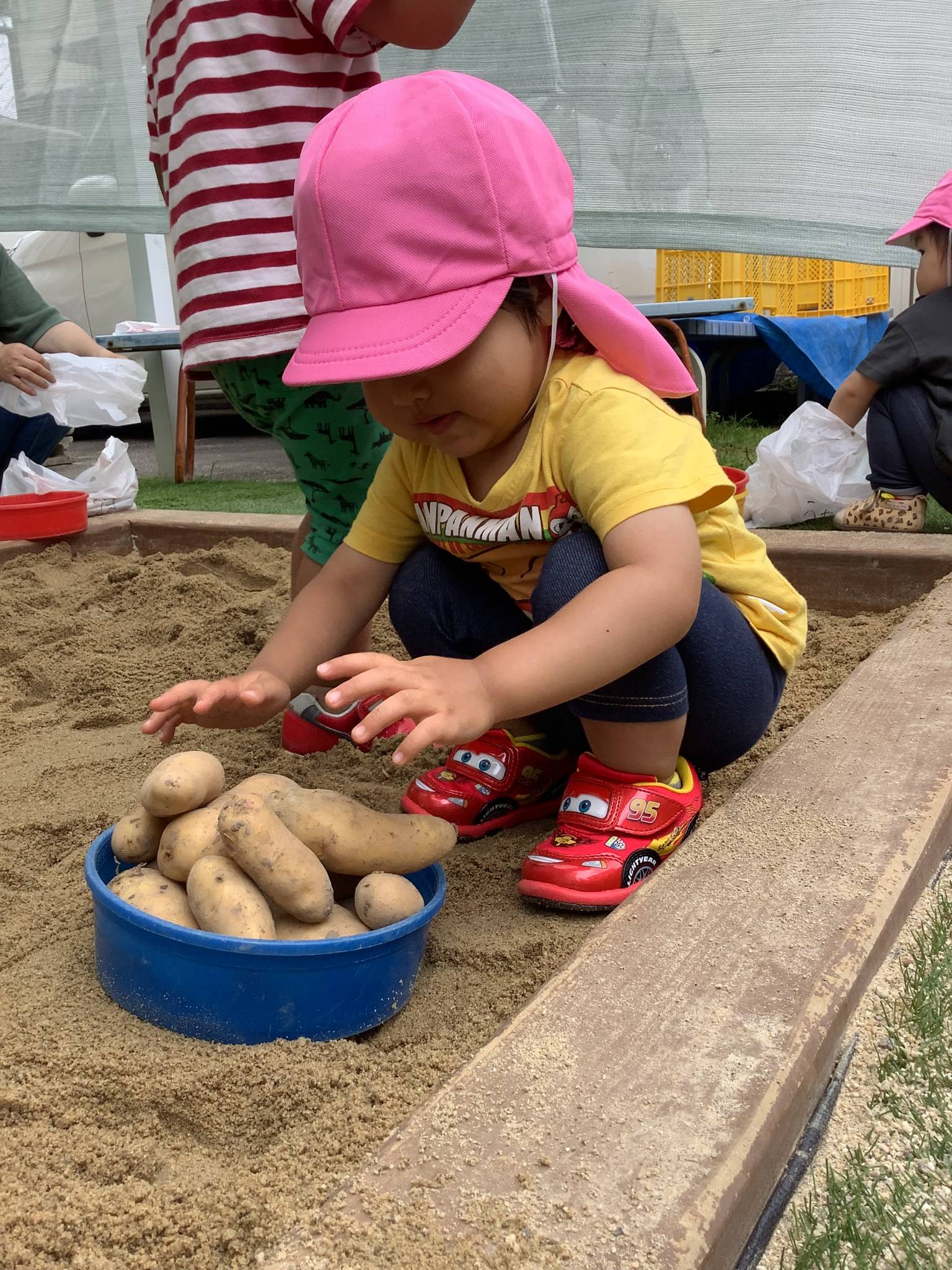 畑で採れたじゃがいもを、砂場に隠しておくと…..