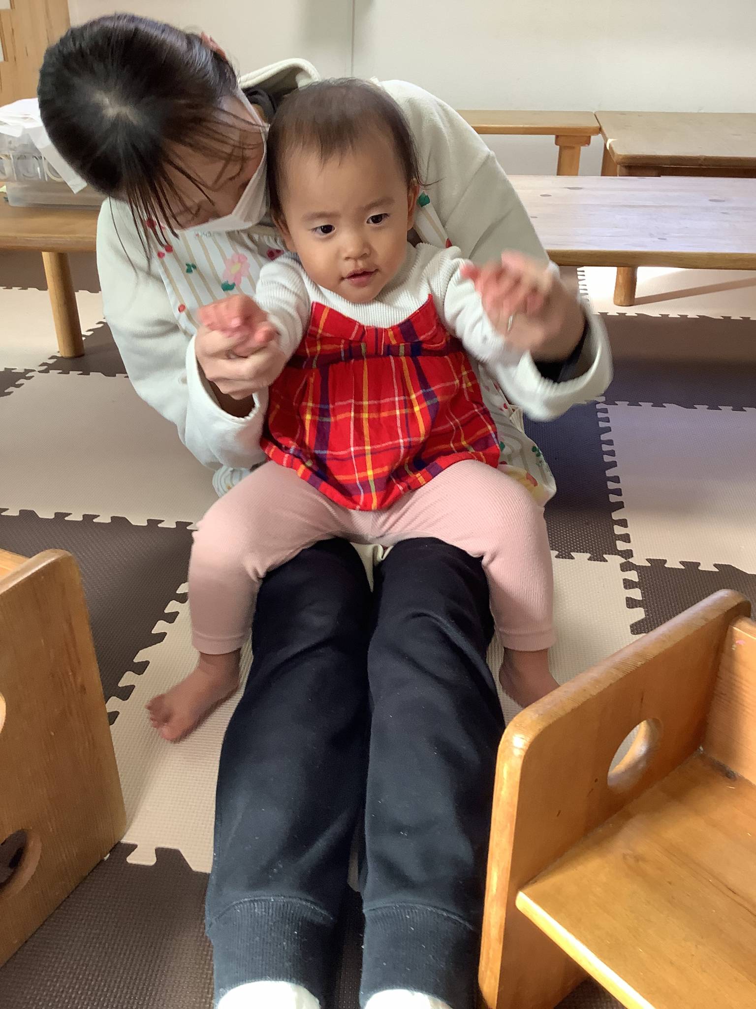 子ども達も先生達の膝に乗って真似っこ✨