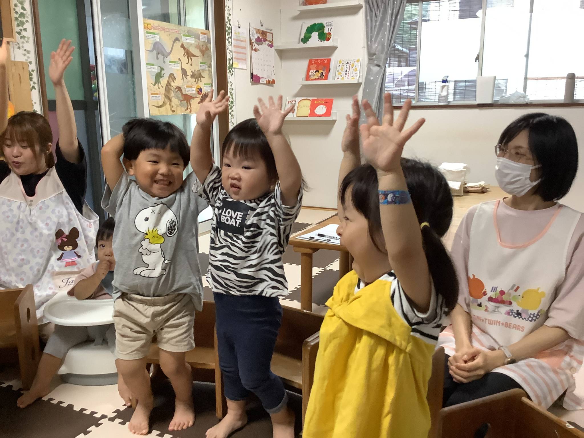 絵本「どんぐりころちゃん」では全身を使って動作を楽しむ姿が見られました。