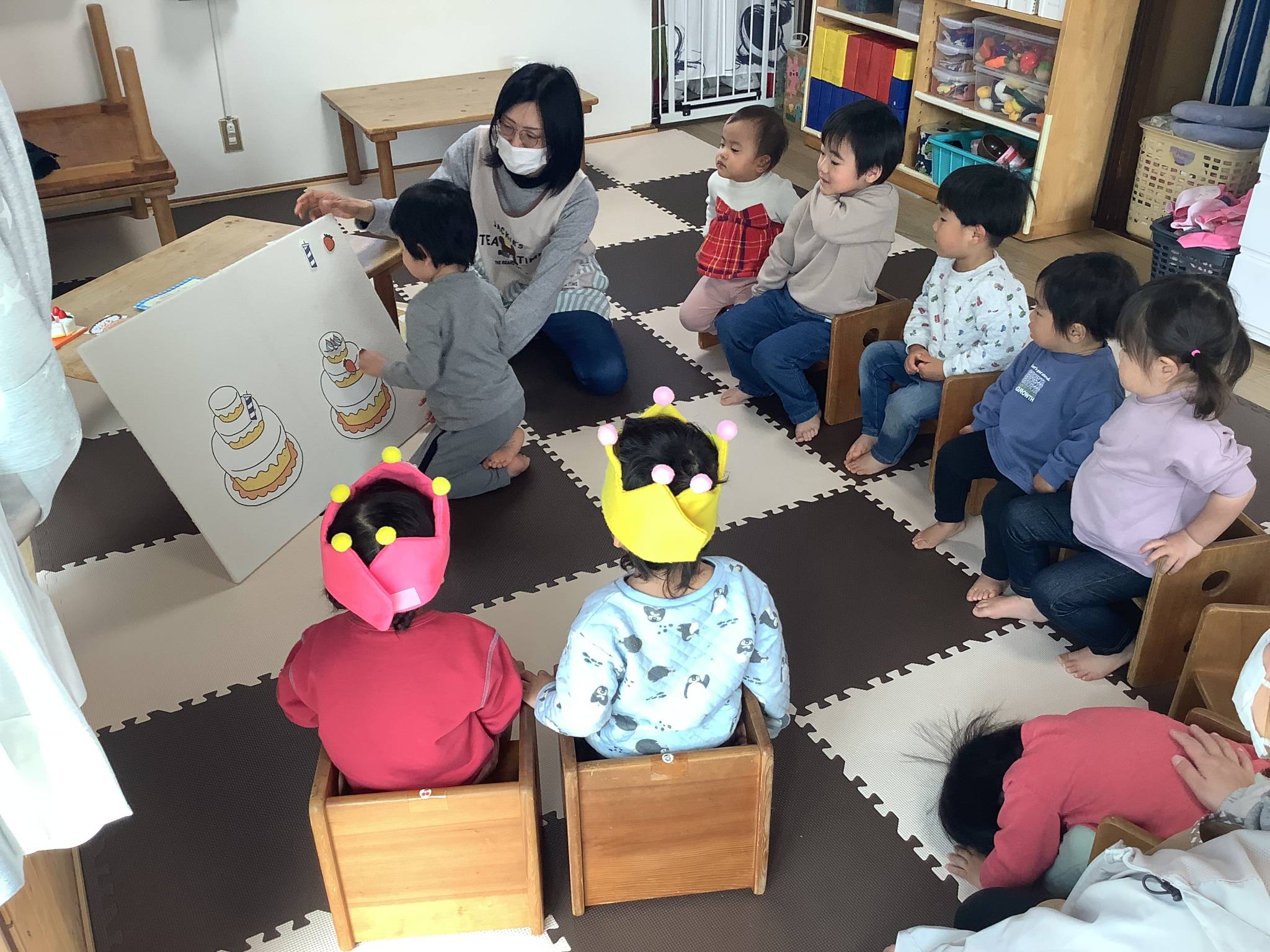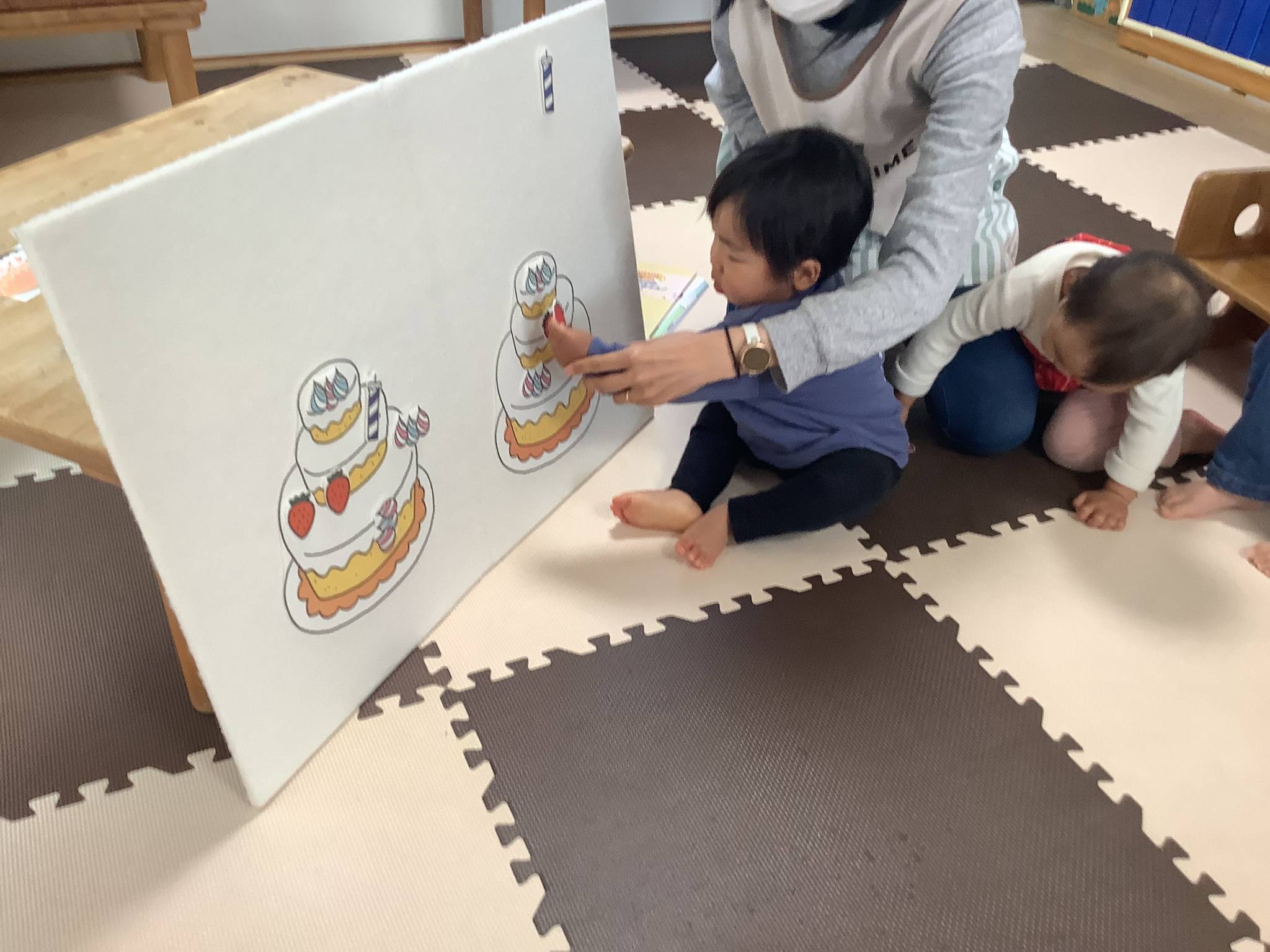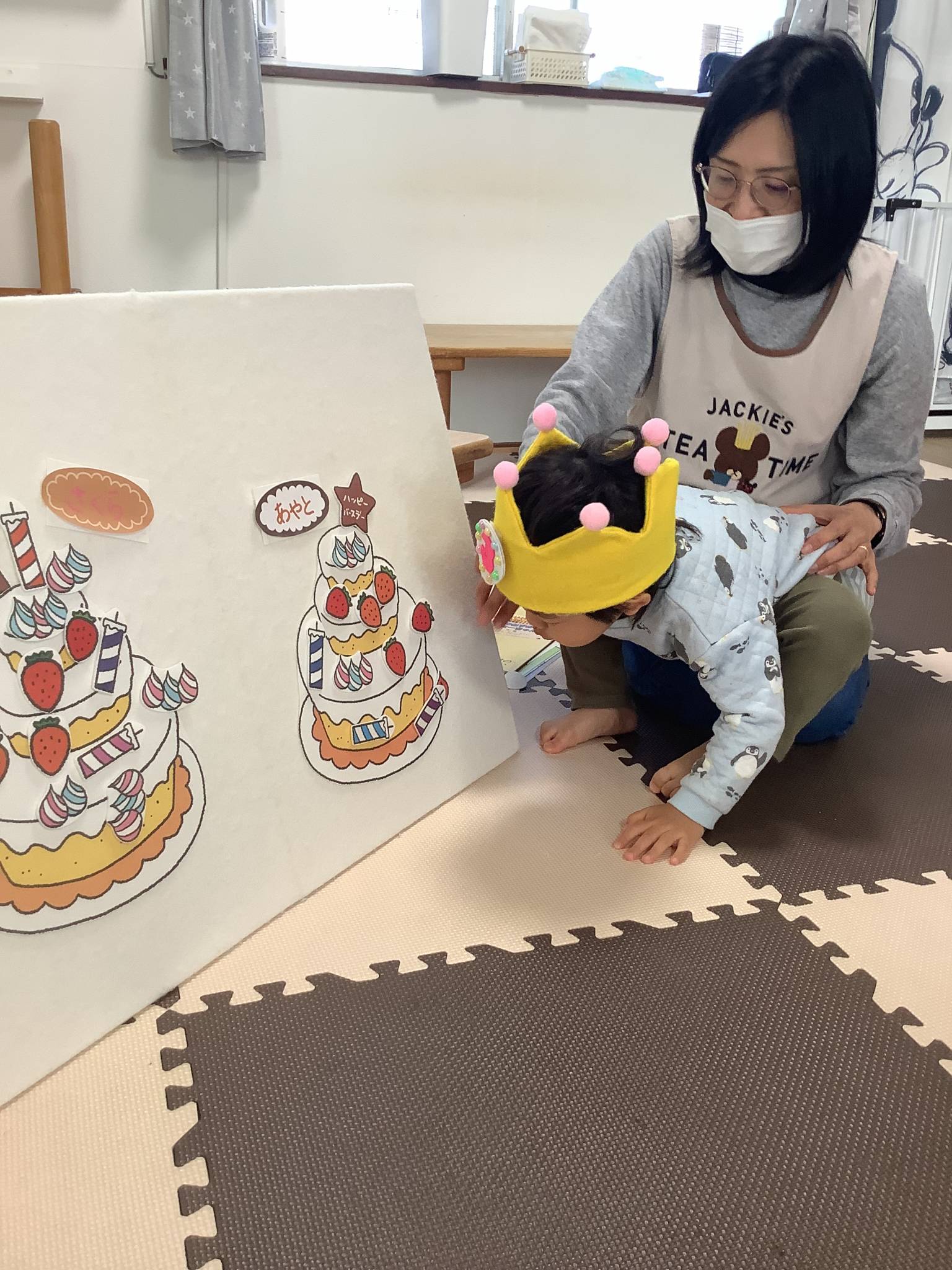 パネルシアターを使って二人のためのお誕生日ケーキを、みんなで作りました。