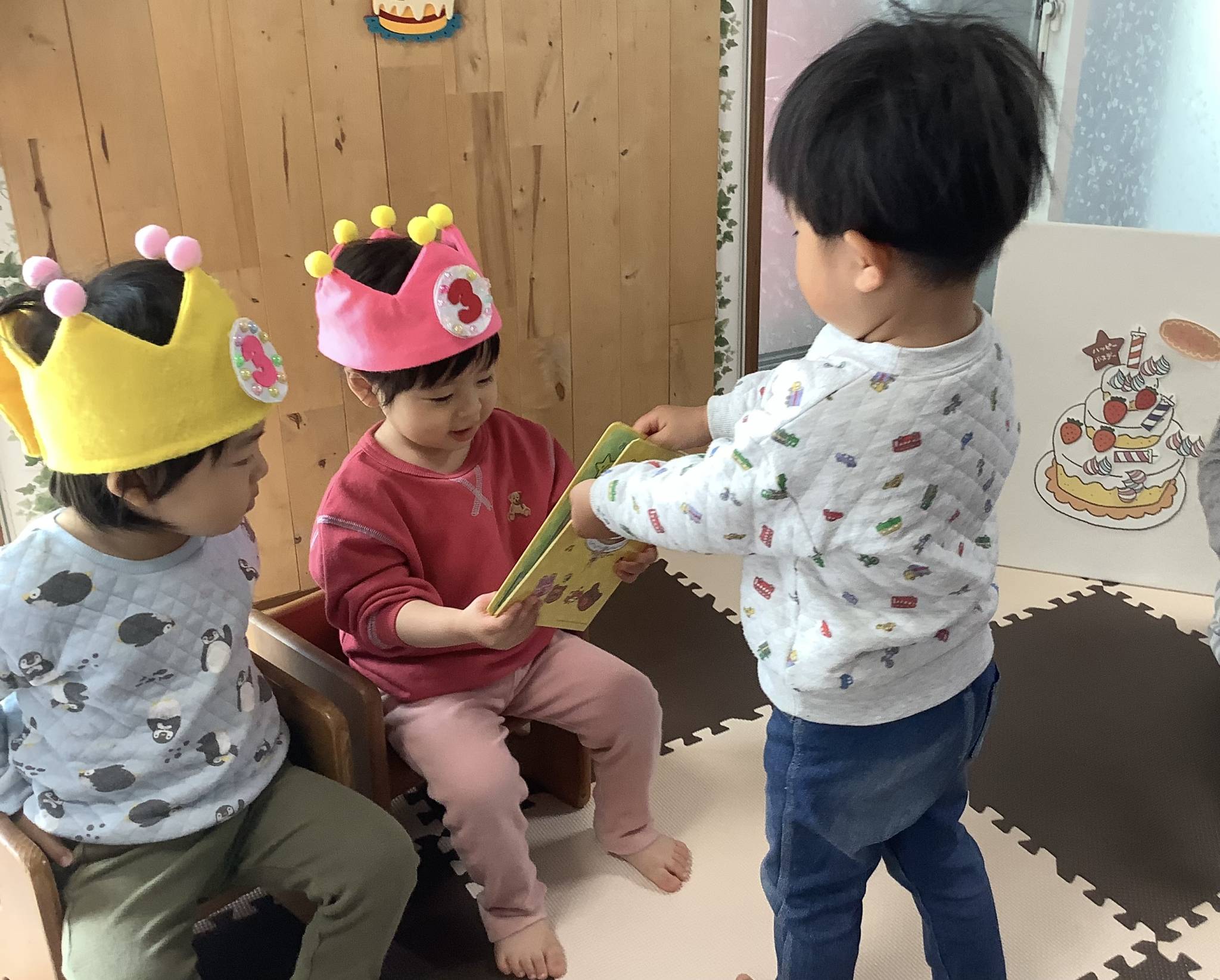 お友達からプレゼントを受け取ると二人ともとっても嬉しそうでした。